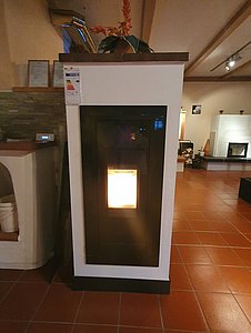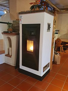 Der vollautomatische Kachelofen unterscheidet sich äußerlich nicht von anderen. Er wird als Warmluft- oder Speicherofen gebaut und wird kombiniert mit einem Kesselkörper zum Warmwassererzeuger. Neu ist nur, dass über einen Brenner im Feuerraumboden alternativ Holzpellets für Wärme sorgen, wenn dies erwünscht ist.